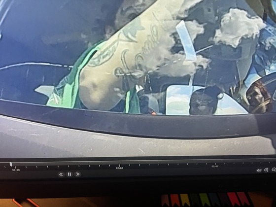 - Front Passenger: White female with dark hair, facial tattoos, wearing a green shirt