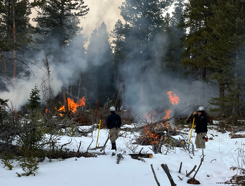 Slash pile burns are conducted to reduce the amount of fuel on the ground as a result of thinning operations. Burns are usually scheduled when there is a winter weather system in the area.
