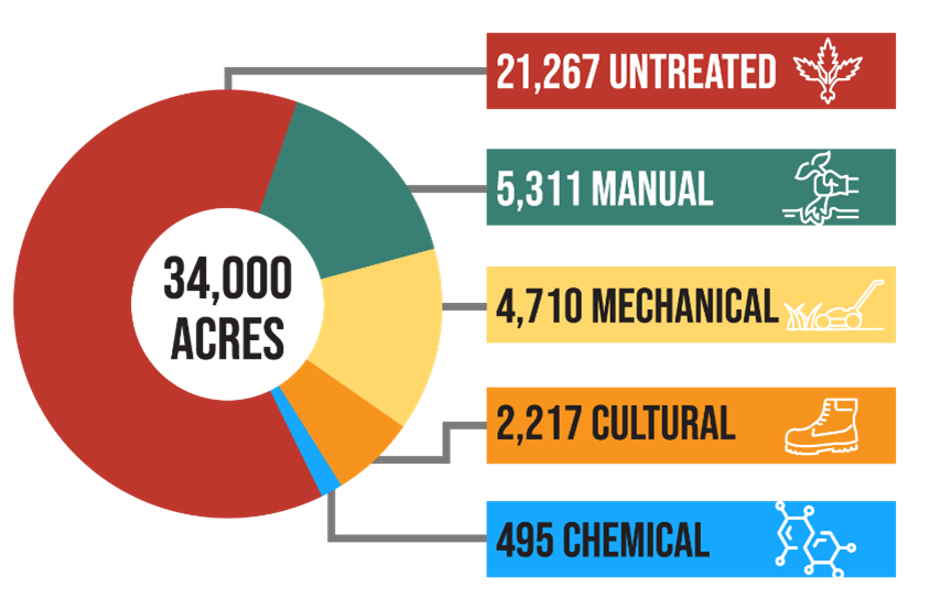 A range of pilot projects are being implemented to evaluate the effectiveness of select noxious weed management treatments and their applicability to natural lands.