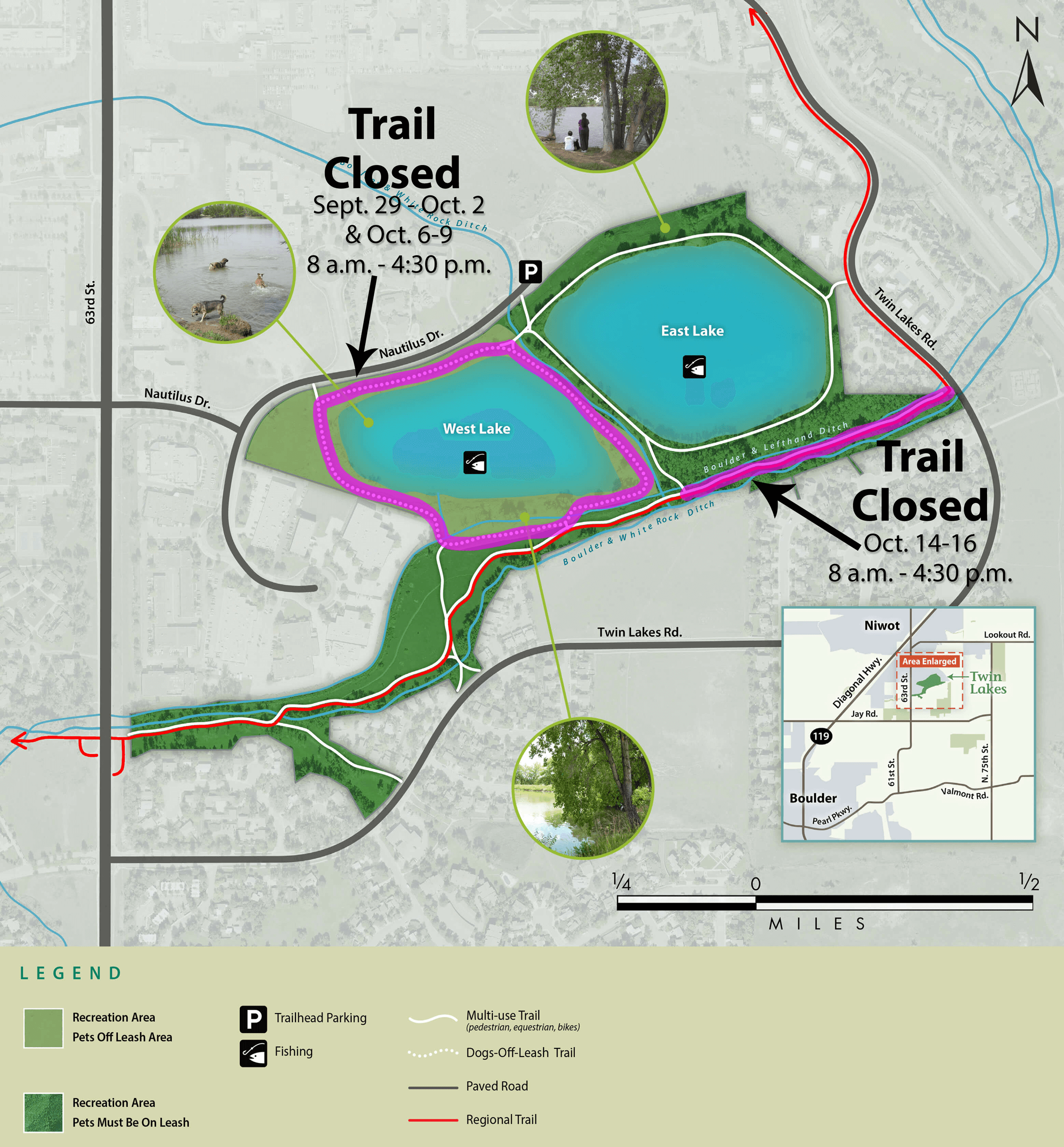 - A section of trail south of the East Lake will be closed Oct. 7-9 from 8 a.m. to 4:30 p.m.