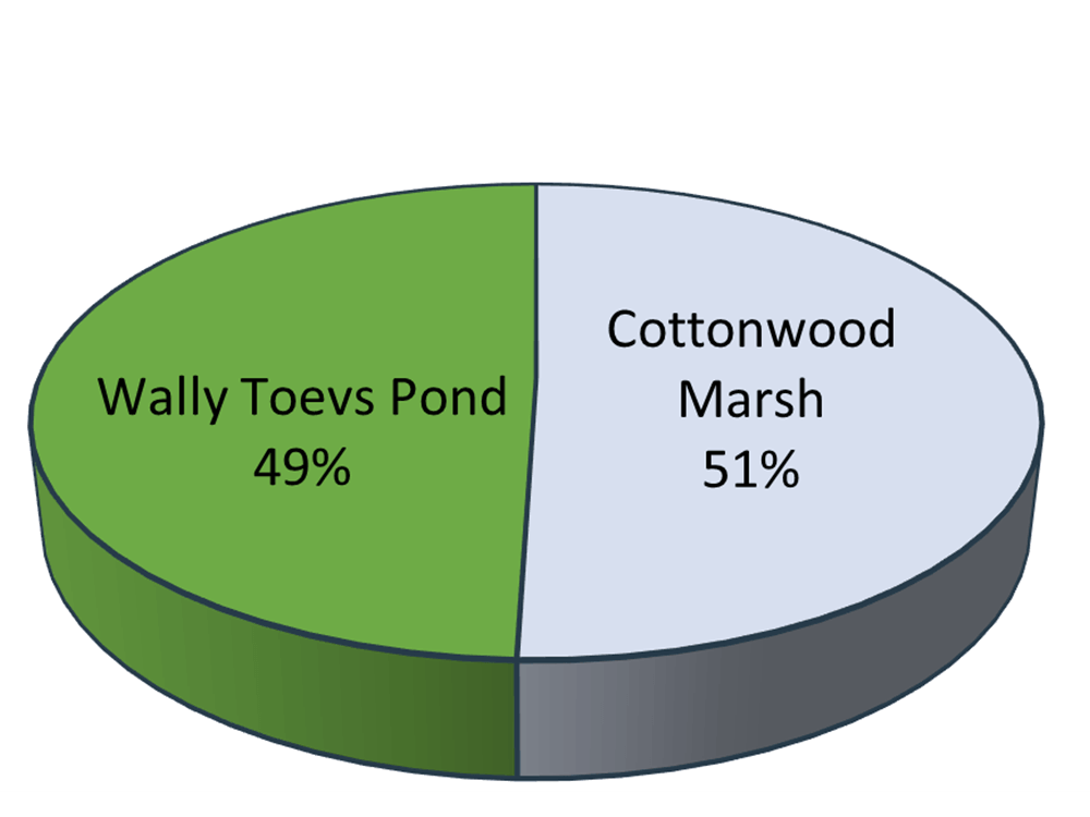 Wetland habitats, nestled within the surrounding Great Plains, support aquatic plant and animal life and attract large numbers of migrating bird species. The 100 acres of grasses, wildflowers and trees surrounding these wetlands, are biologically diverse both in and out of the water.